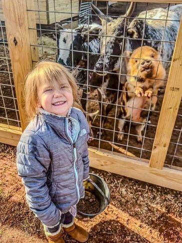Visit our petting zoo barn and feed miniature cattle, sheep, goats, pigs, alpacas and more!